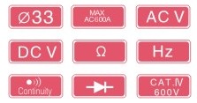 紅色LED表示“非接觸電壓”功能,警告用戶電氣回路中的存在AC電壓。