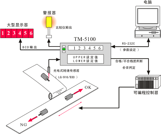 ■ 造紙生產(chǎn)線,玻璃制造生產(chǎn)線上滑動(dòng)率的測(cè)量在生產(chǎn)線的旋轉(zhuǎn)部位裝上轉(zhuǎn)速傳感器,把信號(hào)輸入到TM-5100 中去,此時(shí),TM-5100 上顯示出與基準(zhǔn)輥?zhàn)拥乃俣茸兓剩裕砂创苏{(diào)整各部分的速度,以得到穩(wěn)定品質(zhì)的產(chǎn)品。