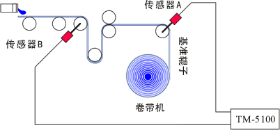 ■ 測(cè)量鋼板、紙張、鋁板等壓延工程中的壓下率(伸張率)通過(guò)裝在卷帶側(cè)的轉(zhuǎn)速傳感器B與送帶側(cè)的轉(zhuǎn)速傳感器A之間的加速差,與A處的速度之比率,來(lái)測(cè)出卷帶的壓下率(伸張率)
