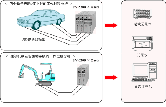為了適應于轉速的多通道測量及小振幅信號傳感器以及小型化的機器用,FV-5300 F/V頻率/電壓轉換器采用了聯結式框體及高精度的輸入放大器電路。另外,還裝有預測運算功能,在減速時,也能夠得到穩定的輸出,能用于驅動裝置在減速或工作過程中的分析實驗。另外,采用了旋轉編碼器的多脈沖化的方法,使輸入頻率提高了,可用于輸入放大器的寬頻帶域測量。另外,也考慮到現場作業應用,用蓄電池也能工作,轉速及速度的設定也簡易,可直讀,使用方便。