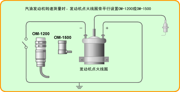 通過對電磁點火方式發(fā)動機的磁性旋轉(zhuǎn)軸上所感應出來泄漏磁力線的檢測來測量轉(zhuǎn)速。只要將與點火線圈平行放置,就可很方便地進行轉(zhuǎn)速檢測。