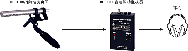 MI-8100是獵槍式指向性麥克風,能非常靈敏地捕捉聲音,對于簡易性音源探測或檢測異常噪聲時,去除背景噪聲非常有效。從50 Hz 到 20 kHz具有非常平坦的頻率特性。指向特性非常靈敏,能夠以高的信噪比(S/N)檢測特定部位發生的各種噪聲。與音響監視器BL-8100組合,能更加明確地測得所需頻率的聲音。